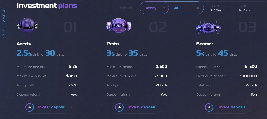 Robotop.io hyip monitor 2.5% daily for 30 days Min $25