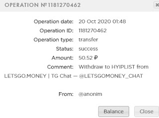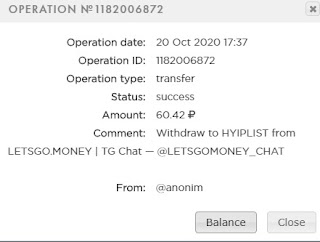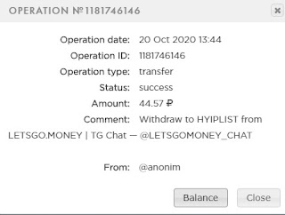 Comment: Withdraw to HYIPLIST from LETSGO.MONEY | TG Chat — @LETSGOMONEY_CHAT