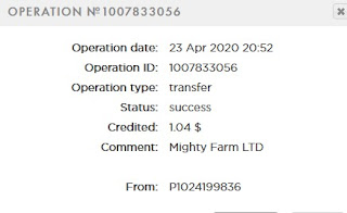 Mighty Farm LTD +2.4 Received Payment 2.4 USD from account U24760543. Memo: Mighty Farm LTD